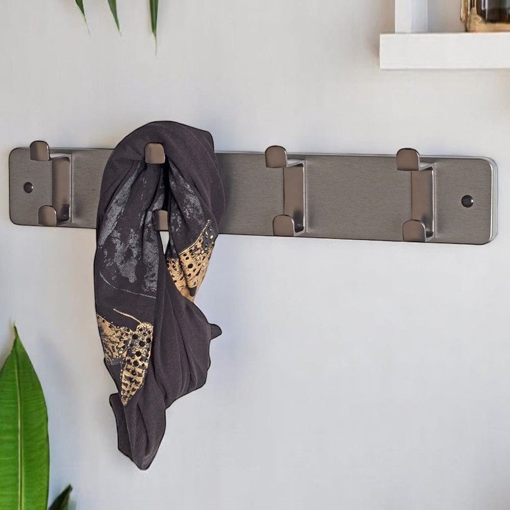 Add functional elegance to your hallway, entryway, or bedroom with the Furniture in Fashion Fillmore Metal Wall Hung Coat Rack With 4 Hooks In Gunmetal. This sleek and stylish wall-mounted coat rack is designed to bring minimalist sophistication to your space while providing practical hanging solutions for coats, bags, hats, scarves, and more. Crafted from durable metal and finished in a timeless matte Gunmetal, the Fillmore coat rack is ideal for modern, industrial, or contemporary interiors. Its space-saving wall-mounted design keeps your belongings organized and easily accessible without occupying valuable floor space. Enhance your homes organization with style using the Furniture in Fashion Fillmore Metal Wall Hung Coat Rack With 4 Hooks In Gunmetal. Its the perfect combination of practicality and modern design for tidy, clutter-free living. FEATURES : Material : Metal Finish : Gunmetal Durable metal construction ensures strength and long-lasting use Elegant Gunmetal finish adds a modern touch to any room decor 4 sturdy hooks for hanging coats, jackets, bags, or accessories Wall-mounted design maximizes space and minimizes clutter Ideal for entryways, hallways, or bedrooms Sleek and minimalist silhouette complements modern interiors Easy to install with included fittings Low maintenance simply wipe clean with a damp cloth Available at an affordable price Images shown are for illustration purpose only DIMENSIONS : Height : 7cm Width : 45cm Depth : 6cm