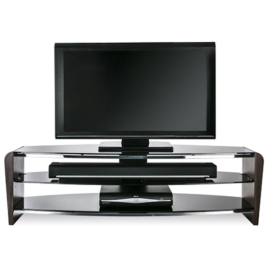 Introducing the Furniture in Fashion Francian Black Glass TV Stand with Black Wooden Frame. This sleek and modern TV stand is designed to elevate your entertainment experience. It features a black glass top that adds a touch of elegance to any living room or media area. The black wooden frame provides sturdy support and complements the overall aesthetic of the stand. With ample storage space, including open shelves and a spacious top, you can conveniently organize and display your media devices, gaming consoles, and accessories. The Francian TV stand is not only stylish but also functional, with cable management features to keep your cords organized and out of sight. Enhance your viewing pleasure and add a contemporary touch to your space with the Furniture in Fashion Francian Black Glass TV Stand with Black Wooden Frame. FEATURES : Material : MDF, Glass Finish : Black Max TV Screen Size : 60 Max Load : 40 kg Max Sound Bar : 120 Stylish wood side supports Safety glass toughened to British & European standards Adjustable centre shelf Cable management Chrome detailing Available at an affordable price Images shown are for illustration purpose only DIMENSIONS : Height : 400mm Width : 1400mm Depth : 460mm