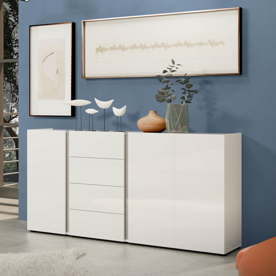 Noah High Gloss Sideboard 3 Doors 4 Drawers In White Anthracite