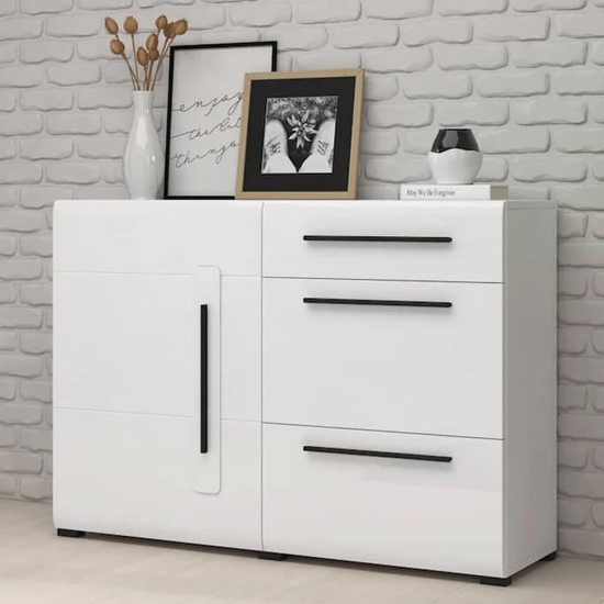 Trail High Gloss Sideboard With 1 Door 3 Drawers In White